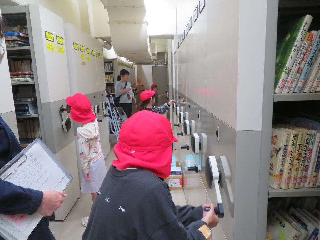 11月6日(木)に裾野市立千福が丘小学校の2年生8名が来館しました。館内では、図書館職員にインタビューをしたり、館内見学をしました。「インタビュー」では、「図書館ではAIは使っていますか?」、「火事にならない工夫はありますか」、「英語の本はありますか?」などの質問がありました。また、館内見学では、普段は入ることが出来ない「閉架書庫」を見学し、本がたくさんある様子にびっくりしていました。その後、児童コーナーでそれぞれが好きな本を選び、楽しそうに本を開いていました。