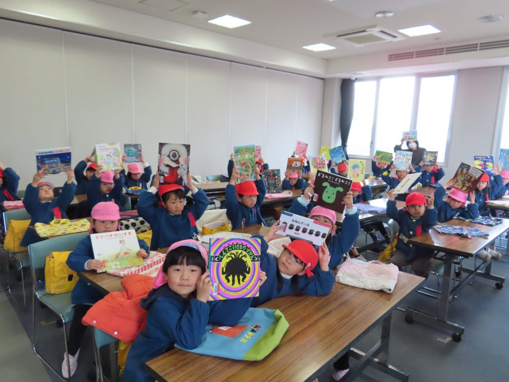 2月17日(火)、裾野市立西幼稚園の年中組さん28名が図書館に遊びに来てくれました。
